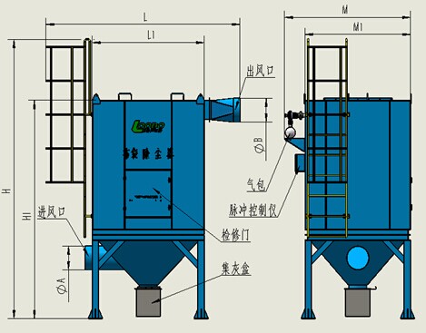 濾筒除塵器一體機結構設計緊湊、合理,采用風機內置式結構。占地面積小,可放室內或室外,為滿足現場不同工況要求開發出了成套的一系列的規格型號;