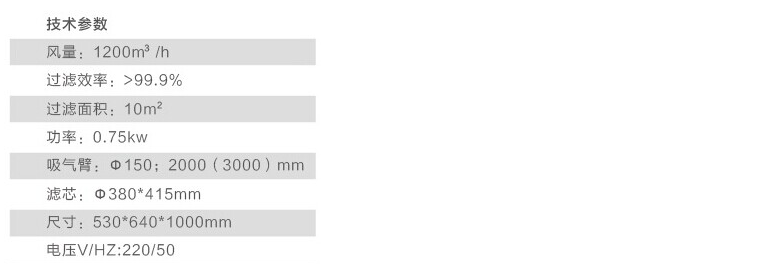 被污染的空氣通過吸氣罩和吸氣臂吸收到過濾裝置中,煙塵和顆粒物被濾芯過濾掉,清潔后的空氣從設備的底部返回到工作間。