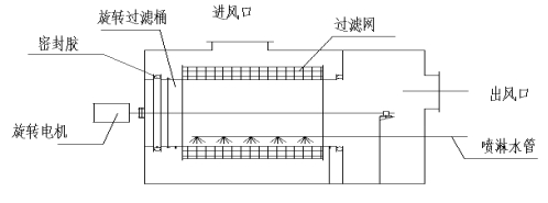 本裝置中旋轉式、帶自動清洗的空氣過濾器結構原理如下:。